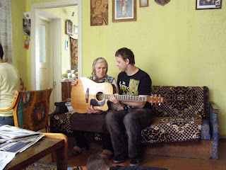 „Šerkšno tylos“ vokalistė su Romualdu Eiču, choro „Tremtinys“ vadovu: